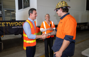 The event also included an apprenticeship recognition ceremony, where Fleetwood Chief Executive Officer Andrea Pidcock addressed employees and invited the Minister to present two Fleetwood apprenticeship awards, recognising their transition to qualified trades and their contribution to the company’s growing modular workforce.